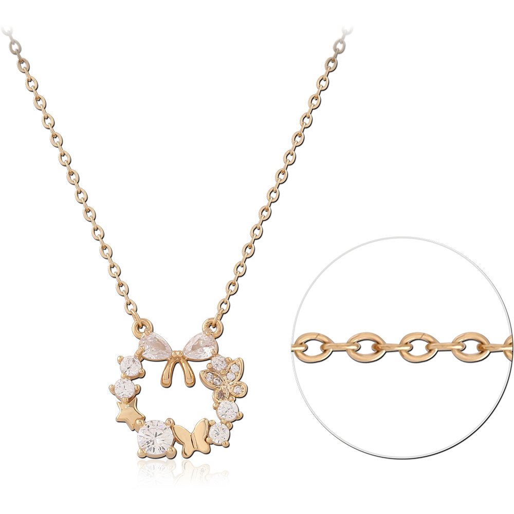 STERLING SILVER 925 GOLD PLATED 18K JEWELED NECKLACE WITH PENDANT