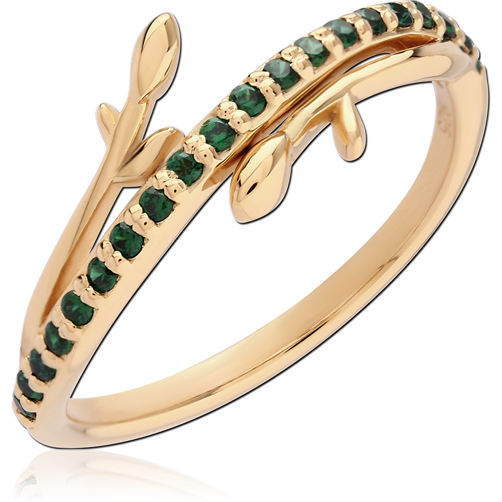 STERLING SILVER 925 18K GOLD PLATED JEWELED RING