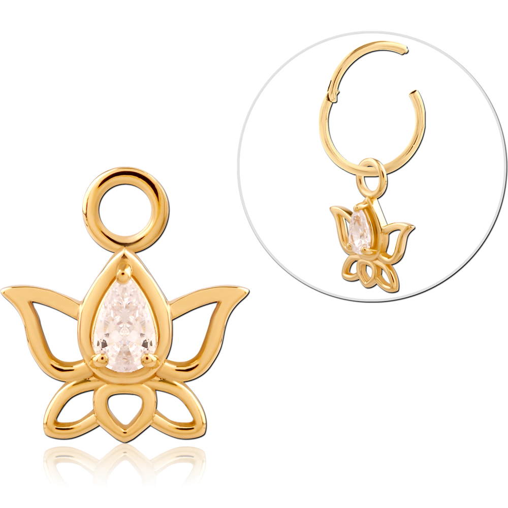 STERLING SILVER 925 18K GOLD PLATED JEWELED SLIDING CHARM FOR HINGED SEGMENT RING