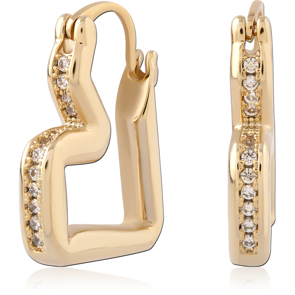 STERLING SILVER 925 GOLD PLATED 18K JEWELED WIRE HOOP EARRINGS