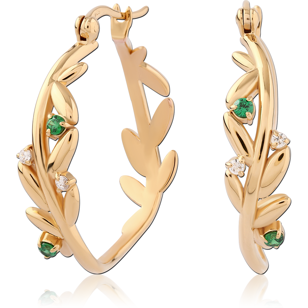STERLING SILVER 925 18K GOLD PLATED JEWELED WIRE HOOP EARRINGS