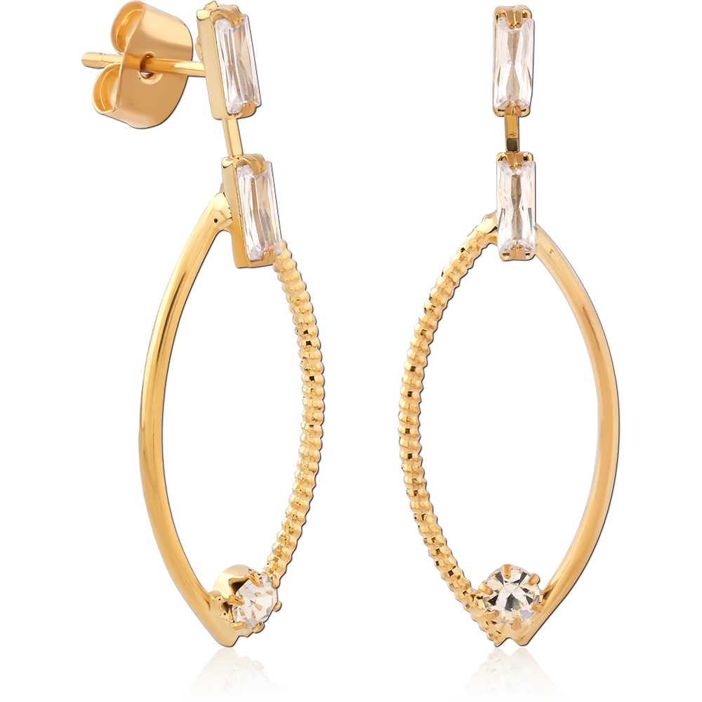 STERLING SILVER 925 GOLD PLATED JEWELED EAR STUDS PAIR