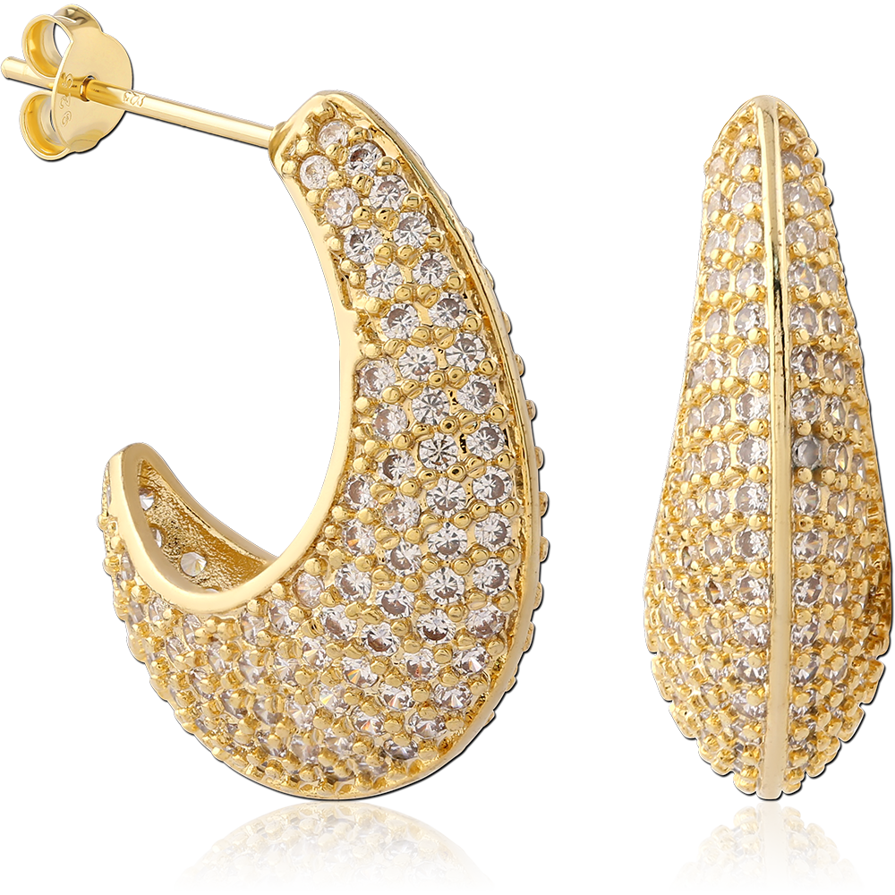 STERLING SILVER 925 GOLD PLATED JEWELED EAR STUDS PAIR