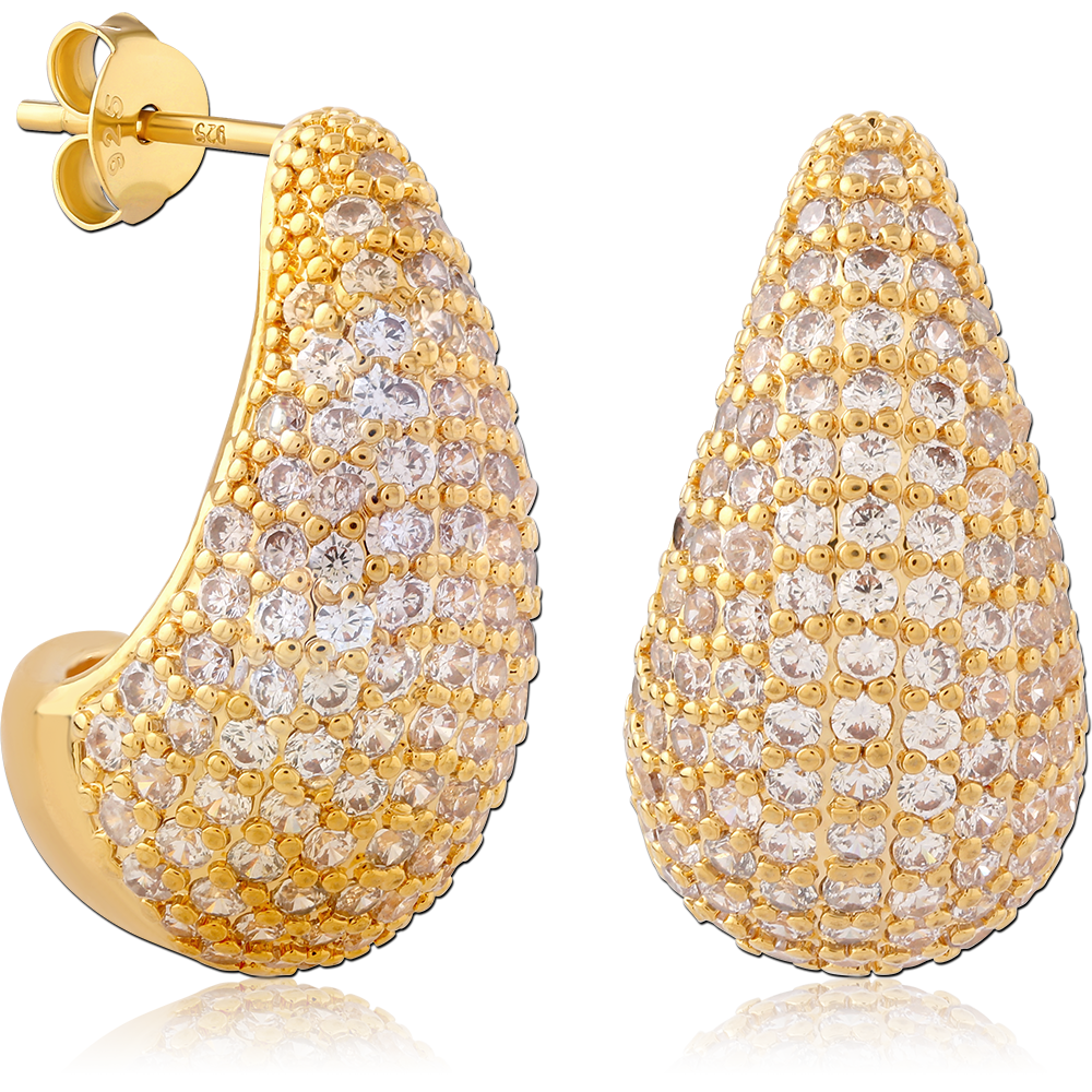 STERLING SILVER 925 GOLD PLATED JEWELED EAR STUDS PAIR