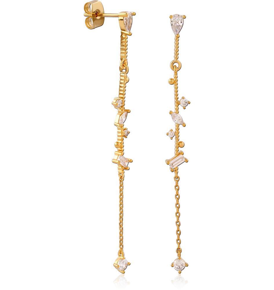 STERLING SILVER 925 GOLD PLATED JEWELED EAR STUDS PAIR
