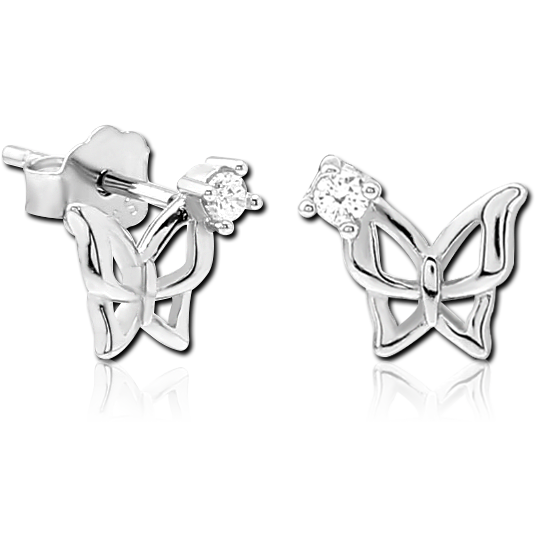 STERLING SILVER 925 JEWELED EAR STUDS PAIR – BUTTERFLY