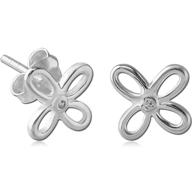 STERLING SILVER 925 JEWELED EAR STUDS PAIR – FLOWER