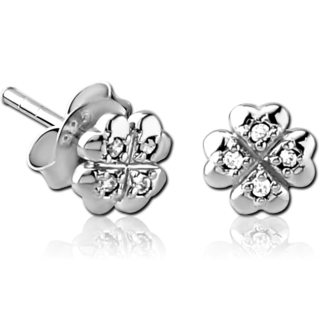 STERLING SILVER 925 JEWELED EAR STUDS PAIR – FOUR HEARTS