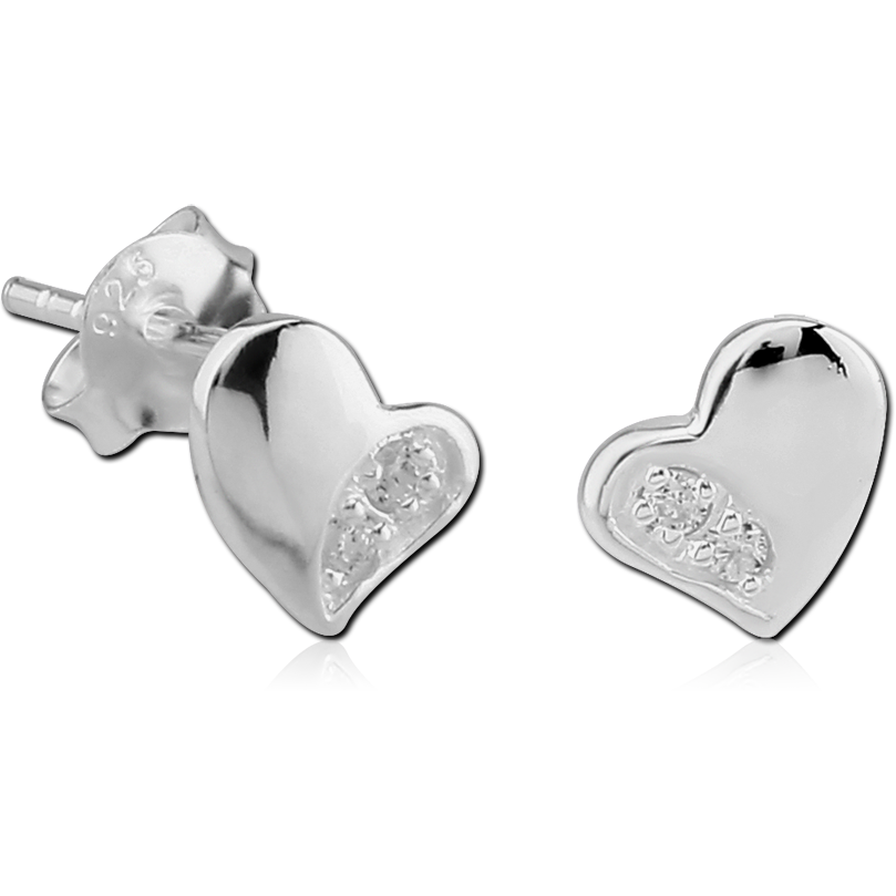 STERLING SILVER 925 JEWELED EAR STUDS PAIR – HEART