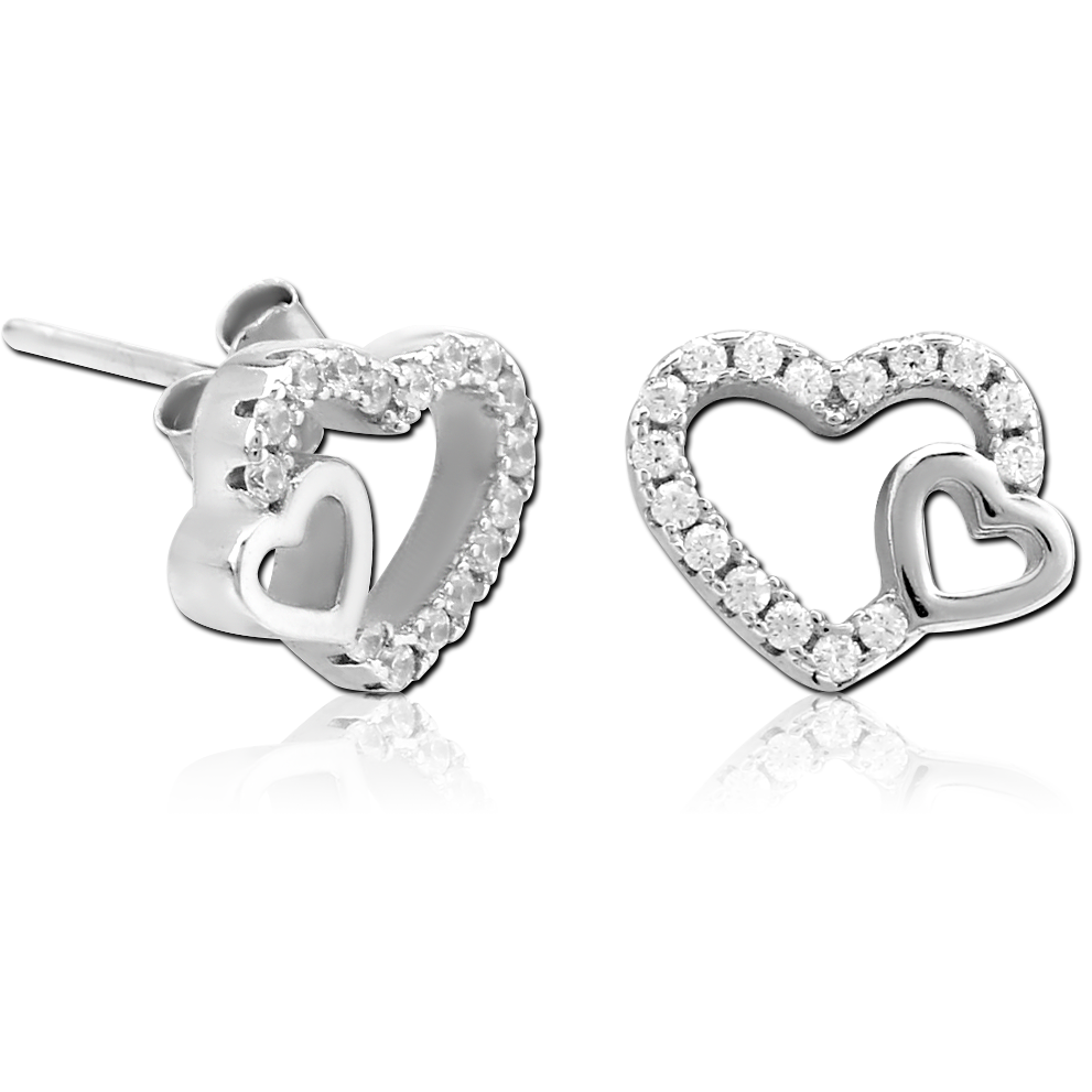 STERLING SILVER 925 JEWELED EAR STUDS PAIR – TWO HEARTS