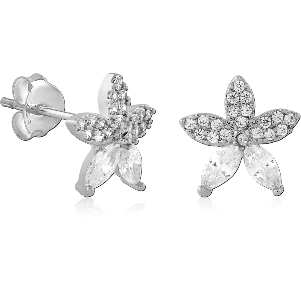 STERLING SILVER 925 PLATED JEWELED EAR STUDS PAIR