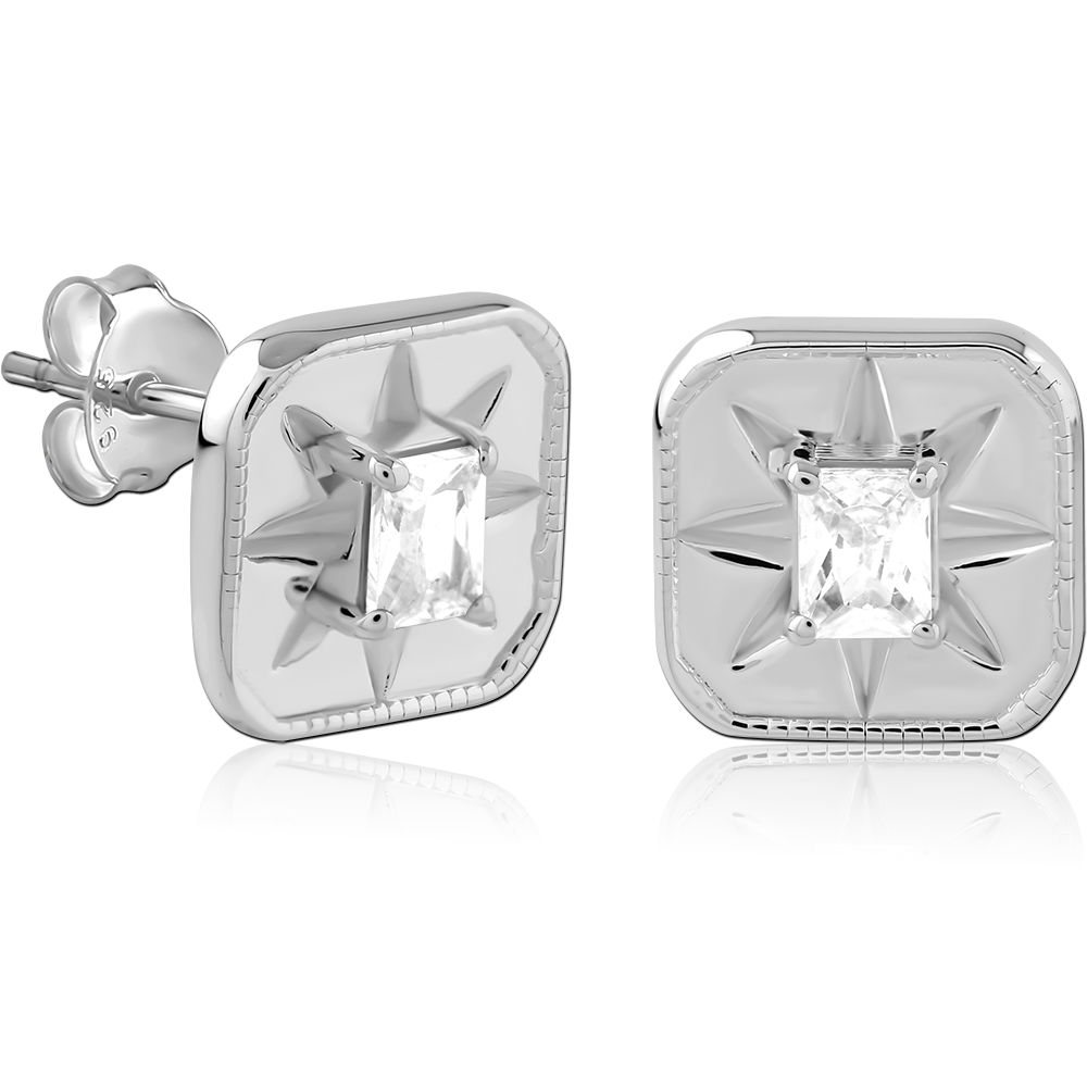 STERLING SILVER 925 PLATED JEWELED EAR STUDS PAIR