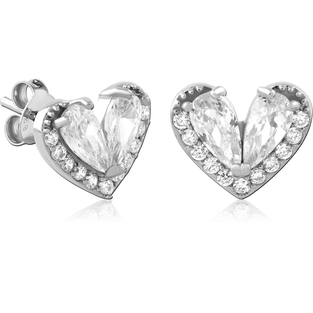 STERLING SILVER 925 PLATED JEWELED EAR STUDS PAIR