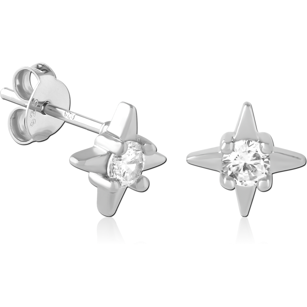 STERLING SILVER 925 PLATED JEWELED EAR STUDS PAIR