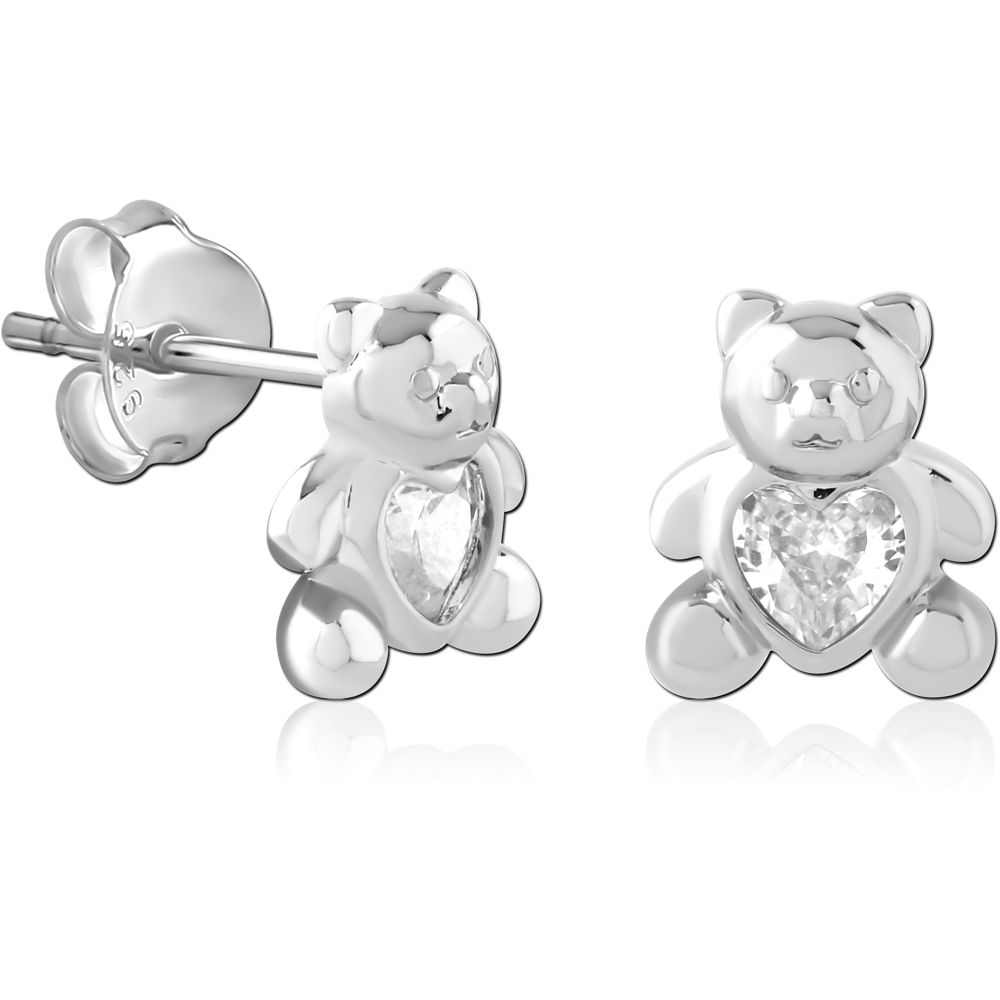STERLING SILVER 925 PLATED JEWELED EAR STUDS PAIR