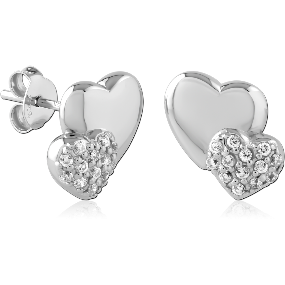 STERLING SILVER 925 PLATED JEWELED EAR STUDS PAIR