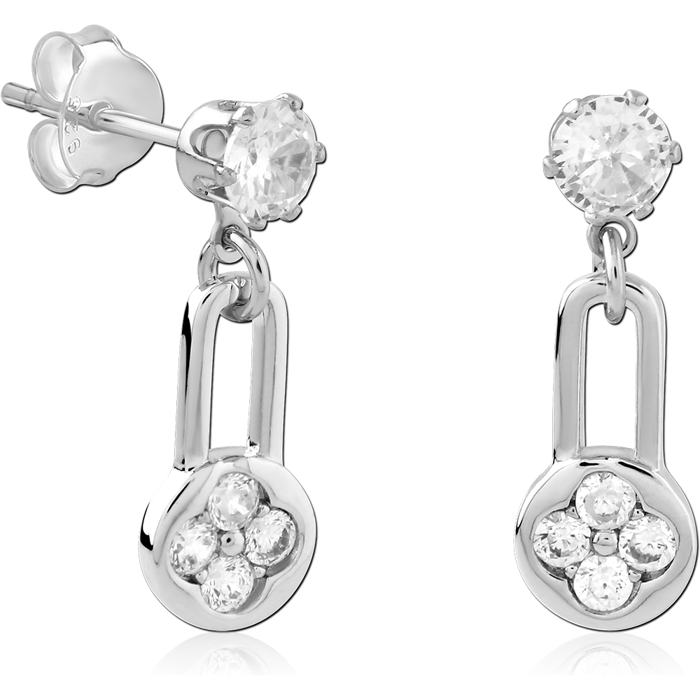 STERLING SILVER 925 PLATED JEWELED EAR STUDS PAIR