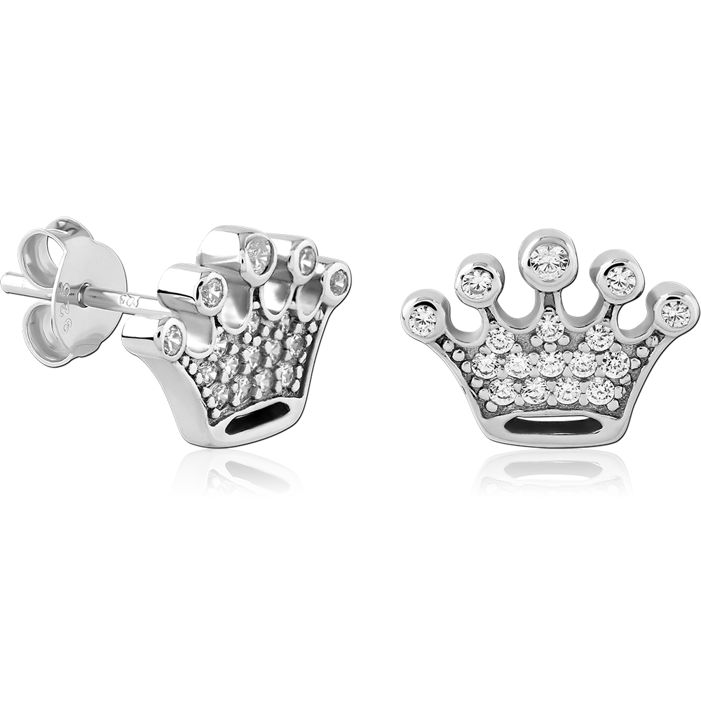 STERLING SILVER 925 PLATED JEWELED EAR STUDS PAIR