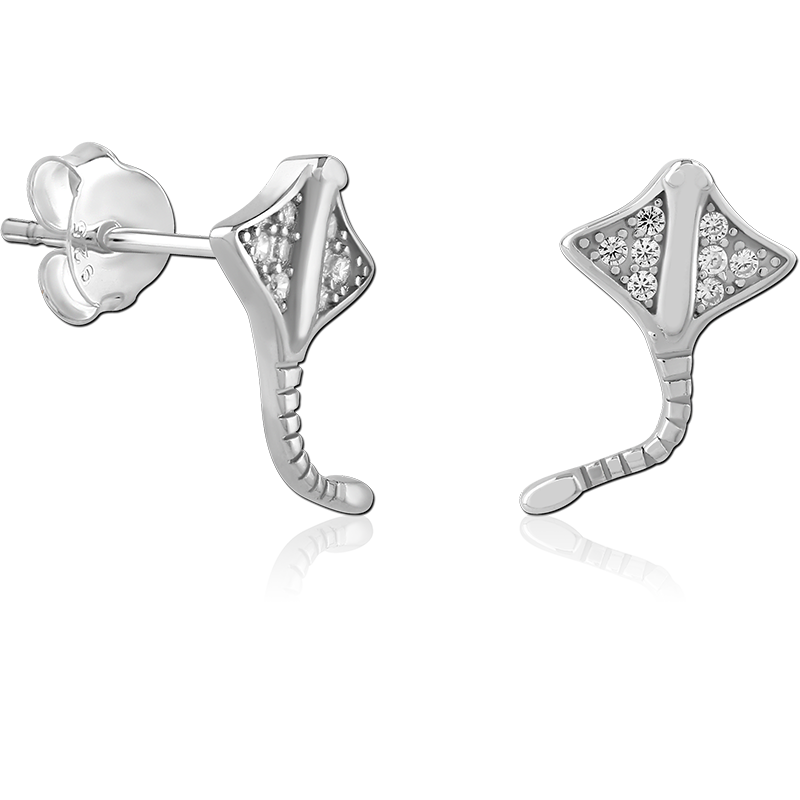 STERLING SILVER 925 PLATED JEWELED EAR STUDS PAIR