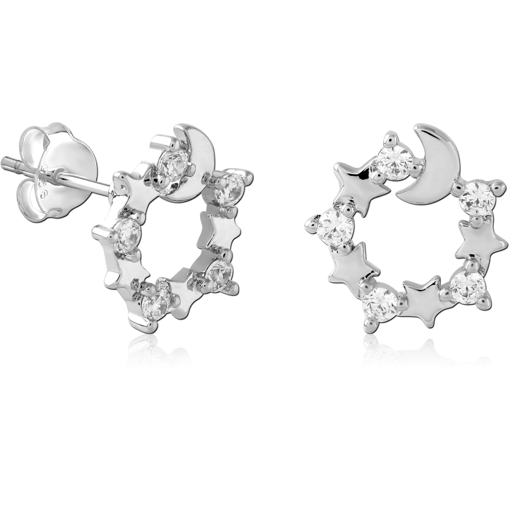 STERLING SILVER 925 PLATED JEWELED EAR STUDS PAIR