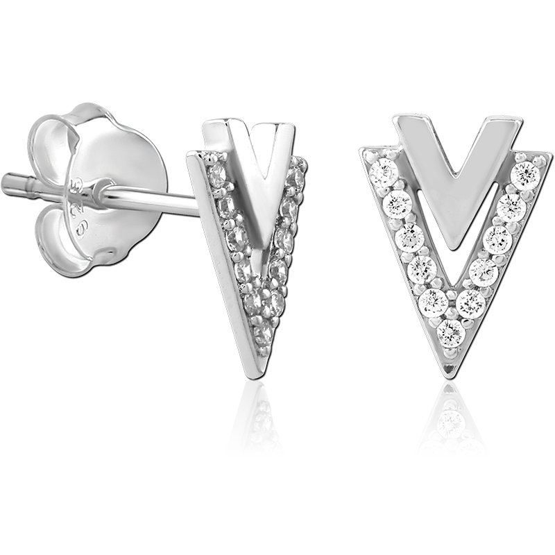 STERLING SILVER 925 PLATED JEWELED EAR STUDS PAIR