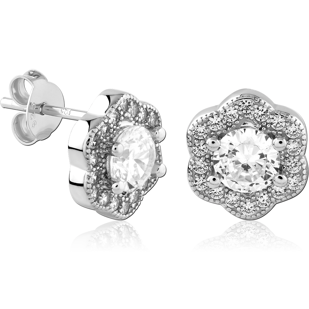STERLING SILVER 925 PLATED JEWELED EAR STUDS PAIR