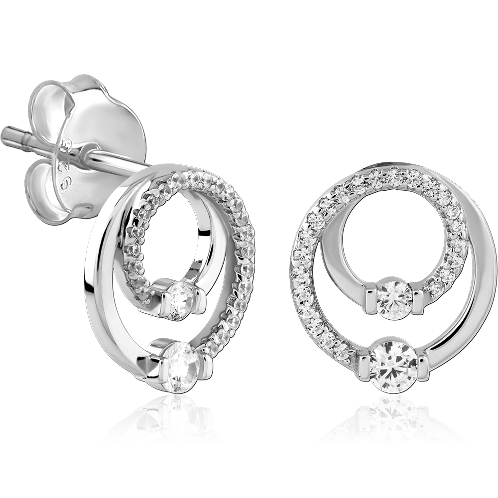 STERLING SILVER 925 PLATED JEWELED EAR STUDS PAIR