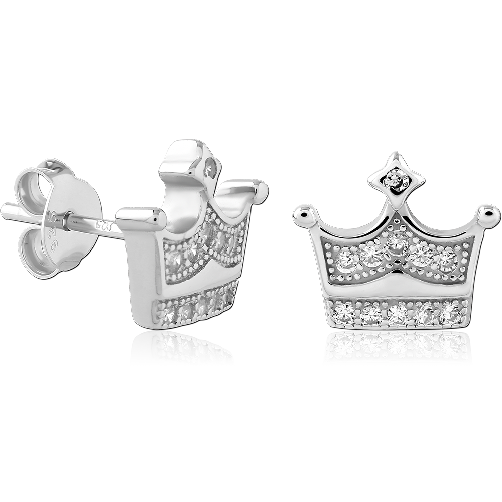 STERLING SILVER 925 PLATED JEWELED EAR STUDS PAIR