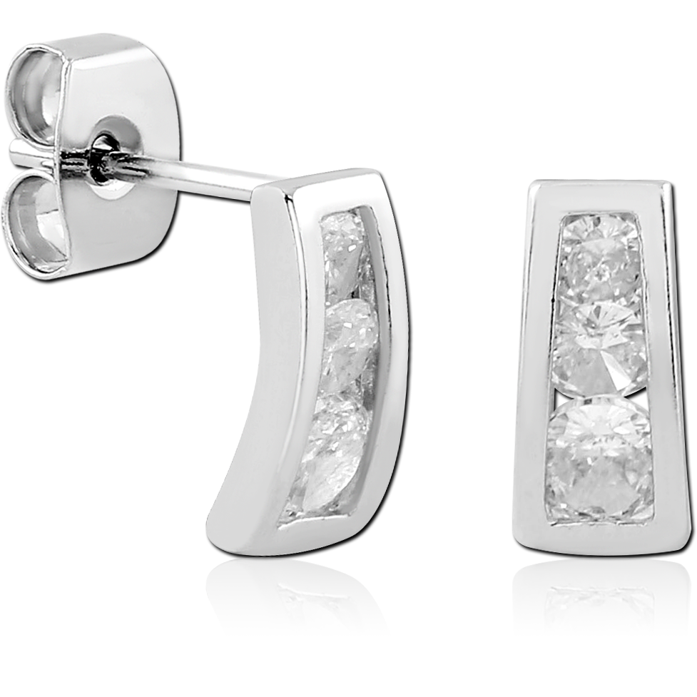 STERLING SILVER 925 PLATED JEWELED EAR STUDS PAIR