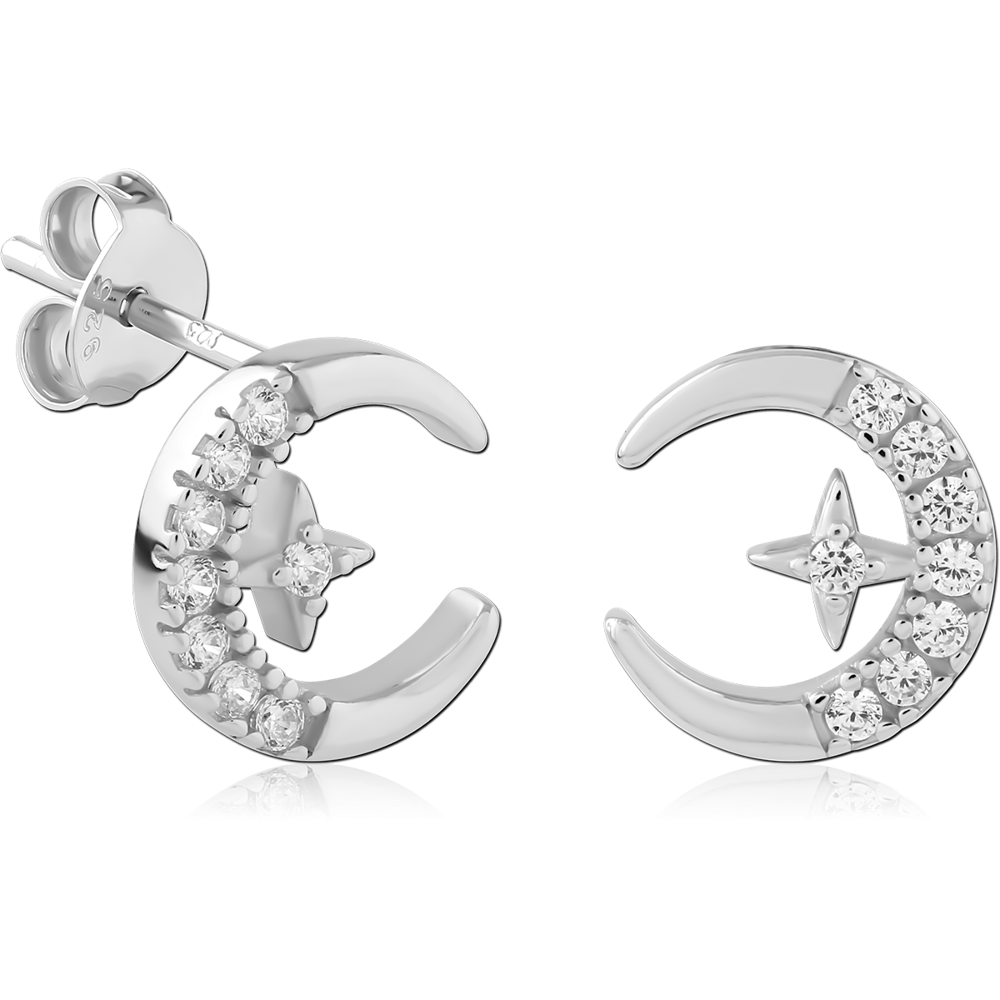 STERLING SILVER 925 PLATED JEWELED EAR STUDS PAIR