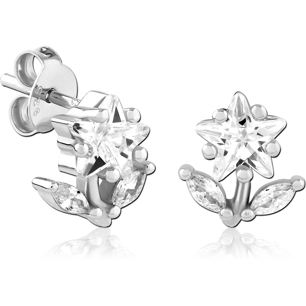 STERLING SILVER 925 PLATED JEWELED EAR STUDS PAIR