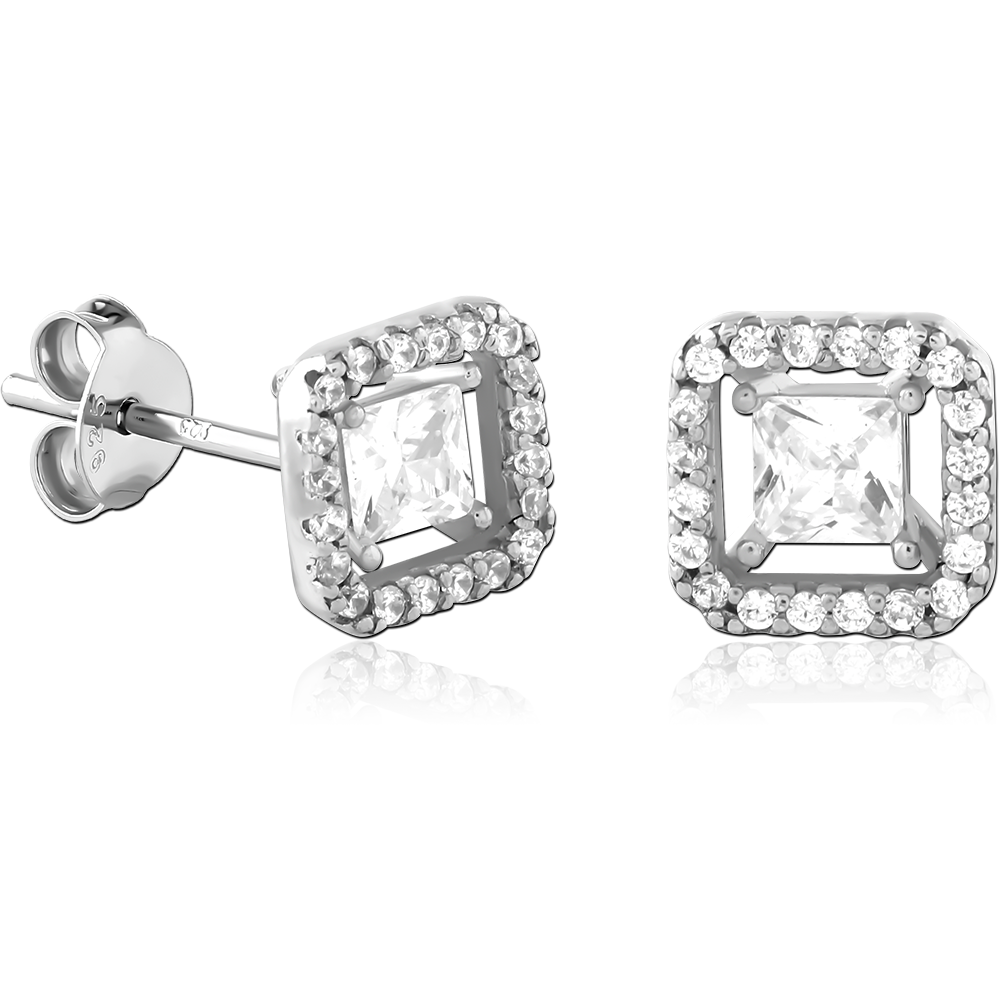 STERLING SILVER 925 PLATED JEWELED EAR STUDS PAIR