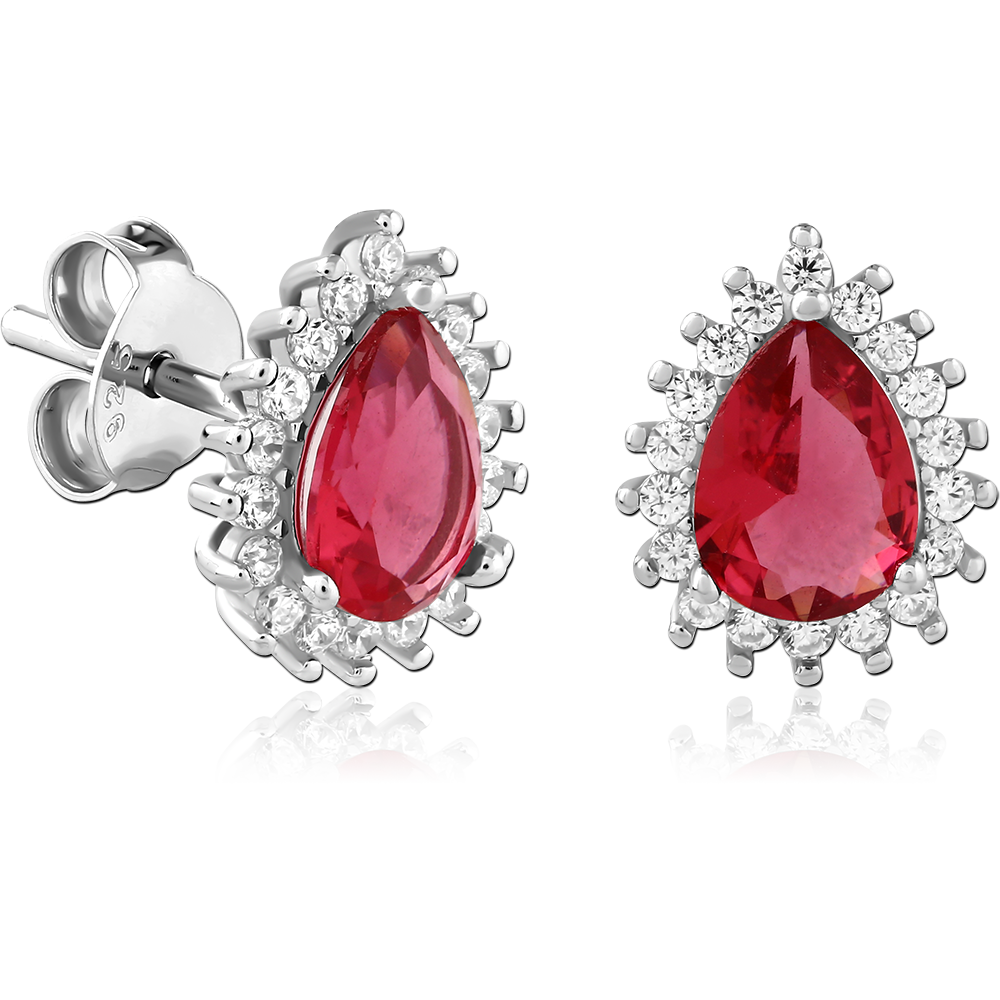 STERLING SILVER 925 PLATED JEWELED EAR STUDS PAIR