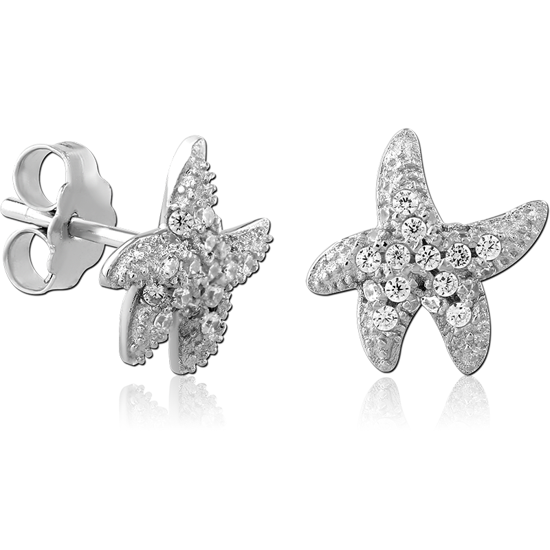 STERLING SILVER 925 PLATED JEWELED EAR STUDS PAIR