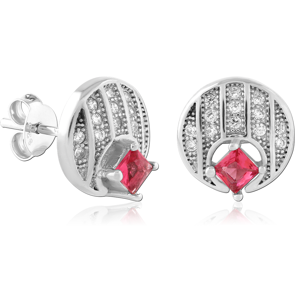 STERLING SILVER 925 PLATED JEWELED EAR STUDS PAIR