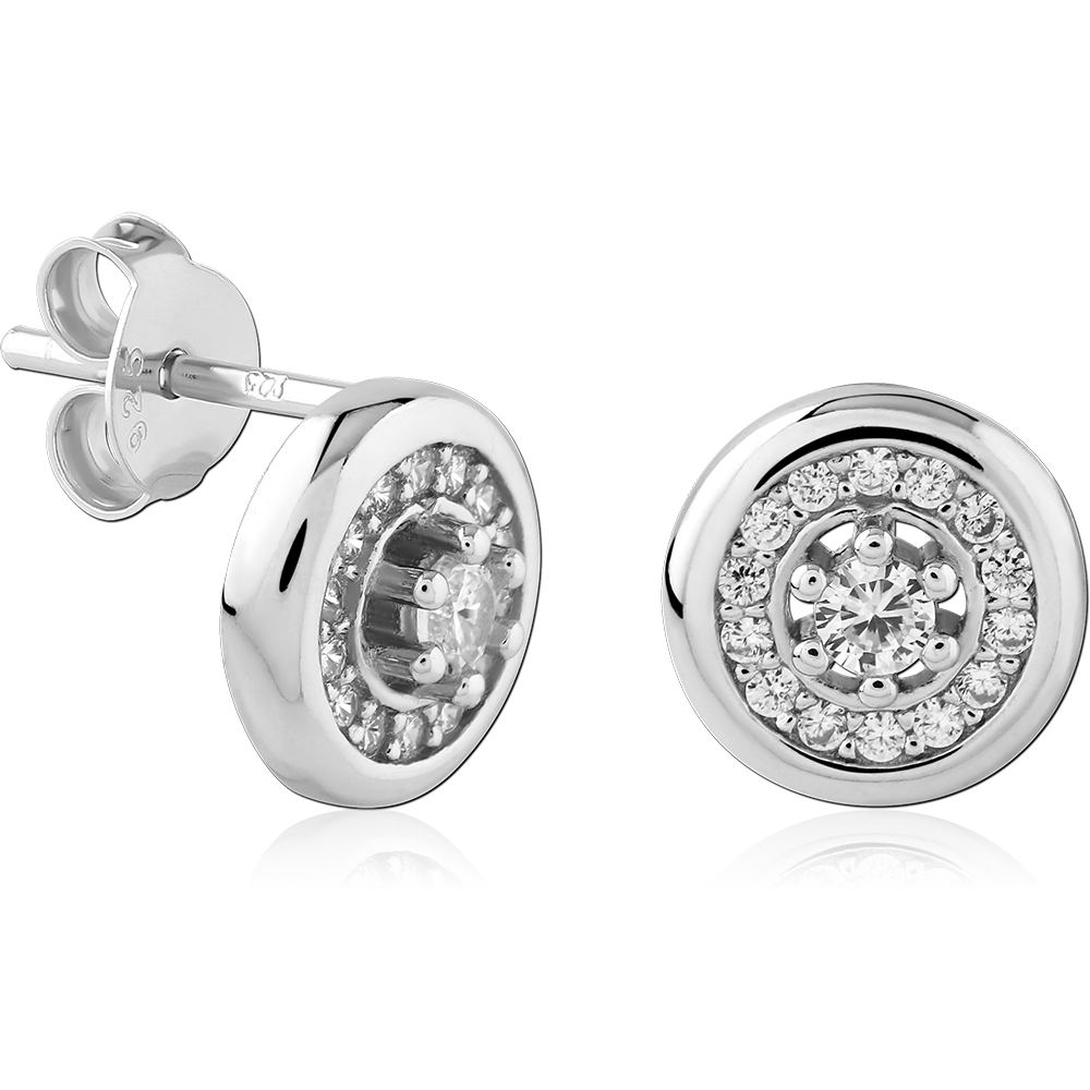 STERLING SILVER 925 PLATED JEWELED EAR STUDS PAIR