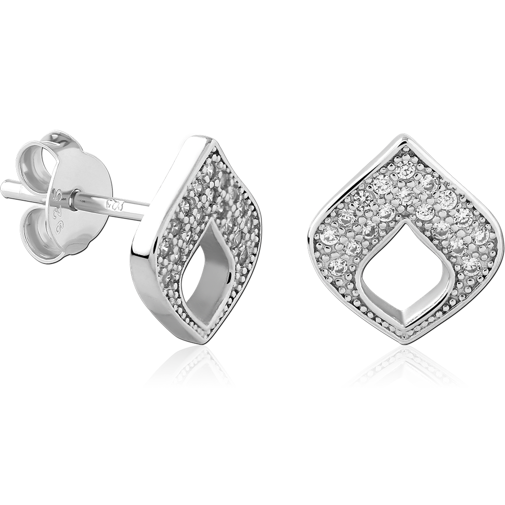 STERLING SILVER 925 PLATED JEWELED EAR STUDS PAIR
