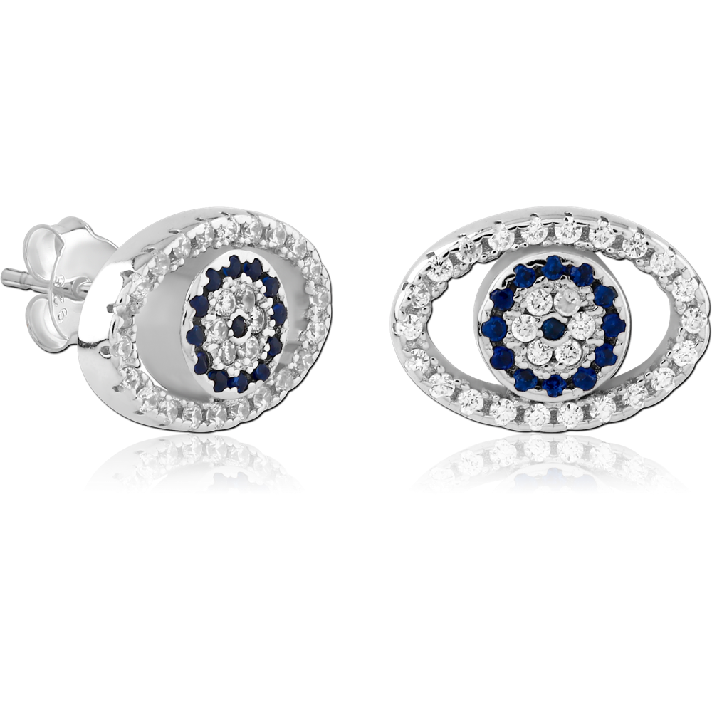 STERLING SILVER 925 PLATED JEWELED EAR STUDS PAIR
