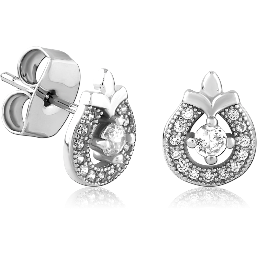 STERLING SILVER 925 PLATED JEWELED EAR STUDS PAIR