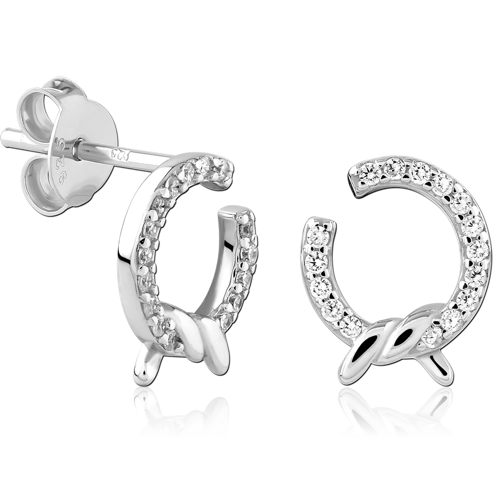 STERLING SILVER 925 PLATED JEWELED EAR STUDS PAIR