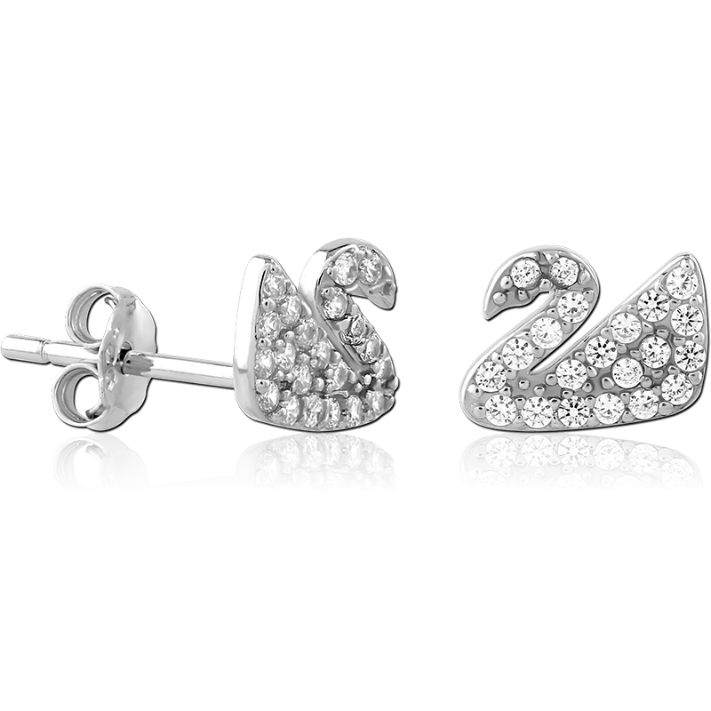 STERLING SILVER 925 PLATED JEWELED EAR STUDS PAIR