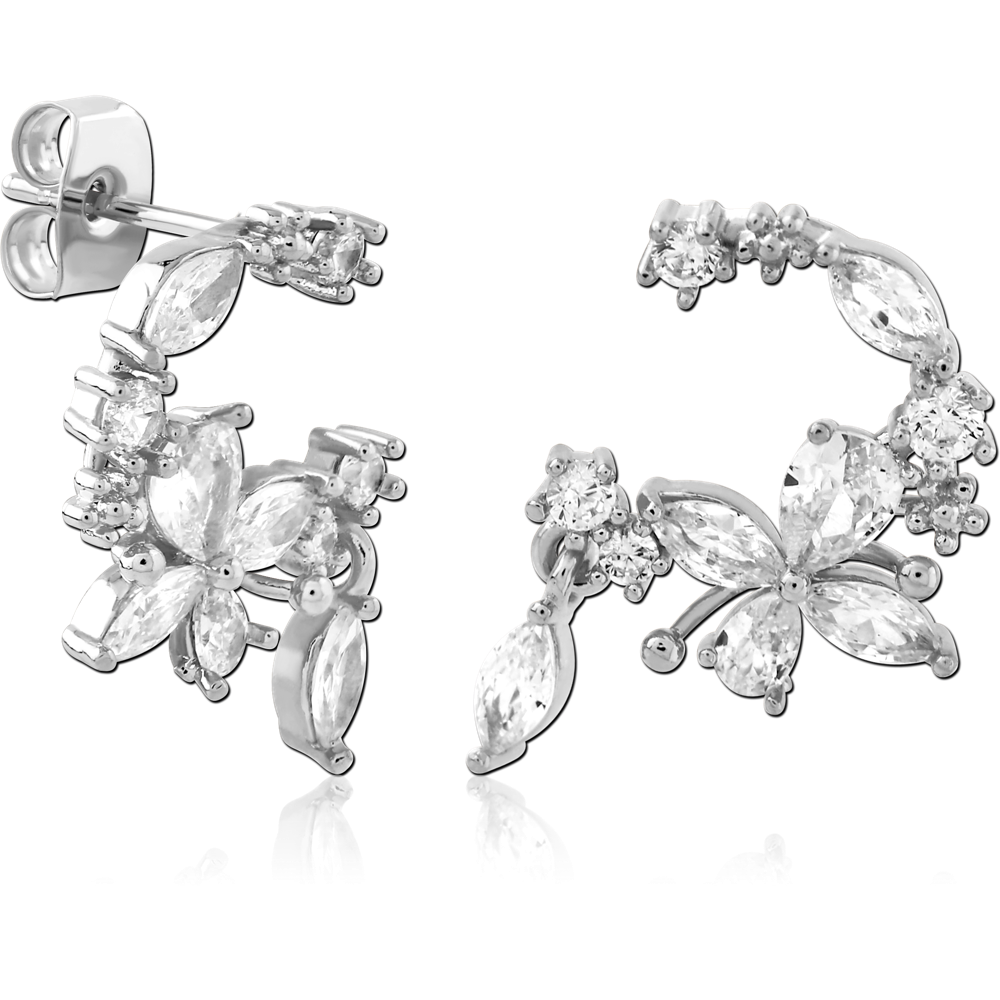 STERLING SILVER 925 PLATED JEWELED EAR STUDS PAIR