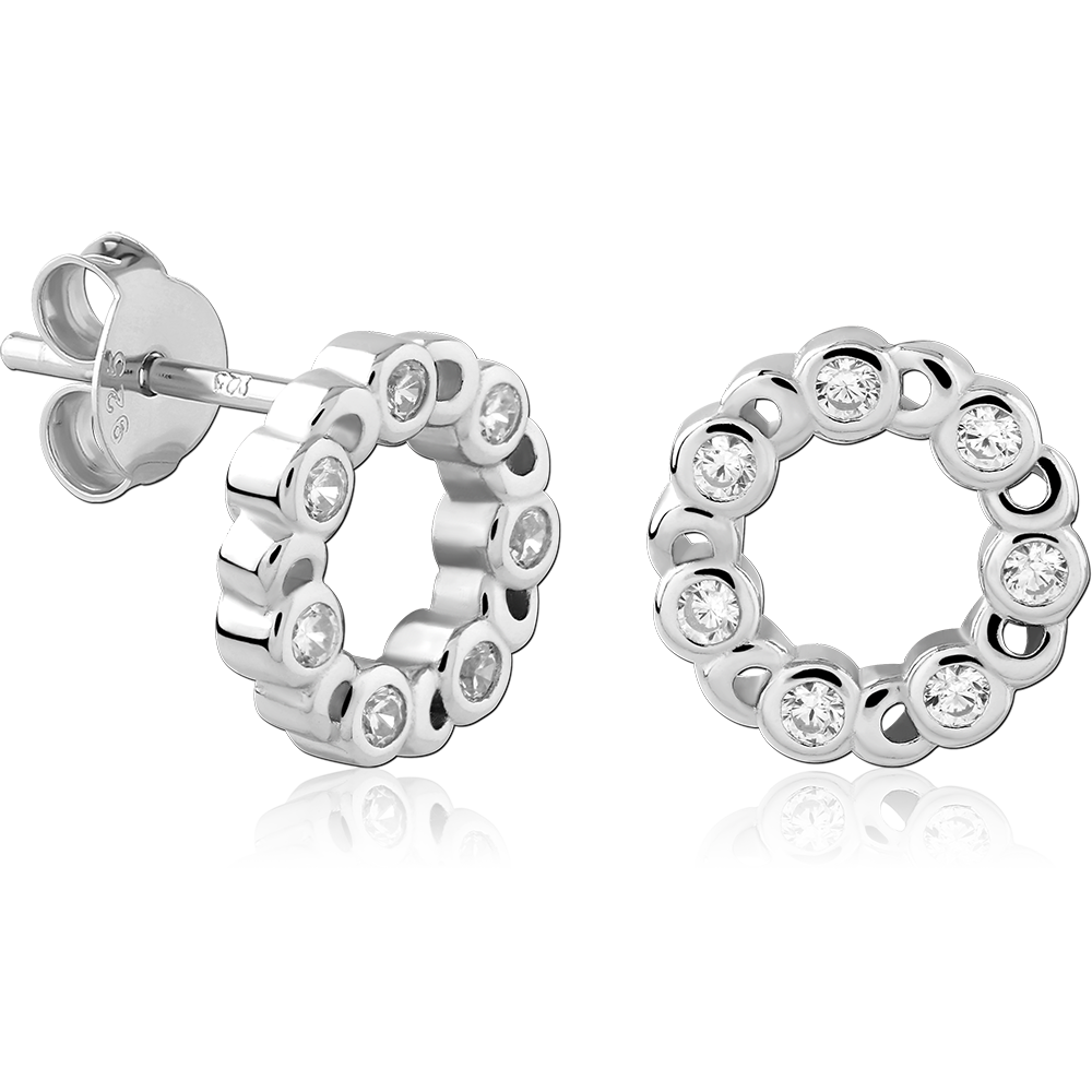 STERLING SILVER 925 PLATED JEWELED EAR STUDS PAIR