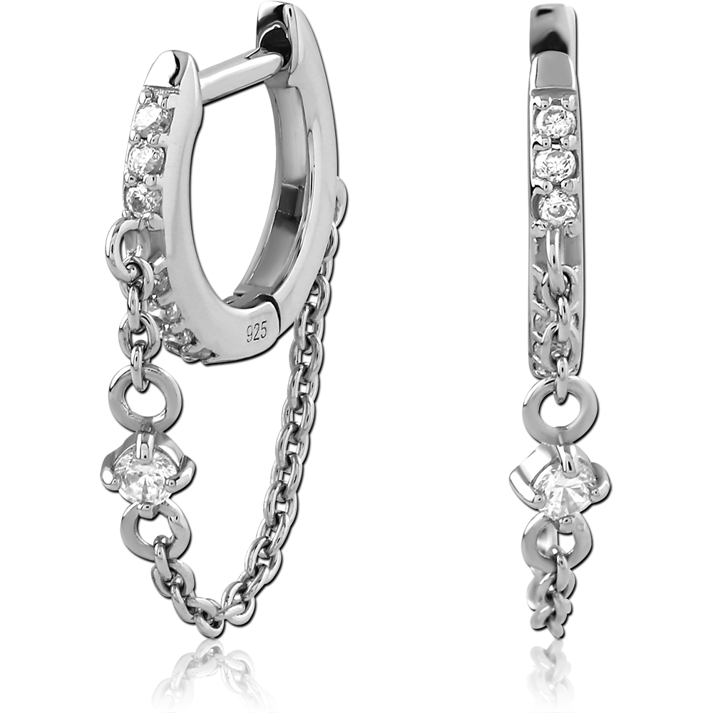 STERLING SILVER 925 RHODIUM PLATED JEWELED HUGGIES PAIR
