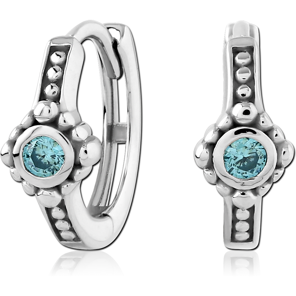STERLING SILVER 925 RHODIUM PLATED JEWELED HUGGIES PAIR