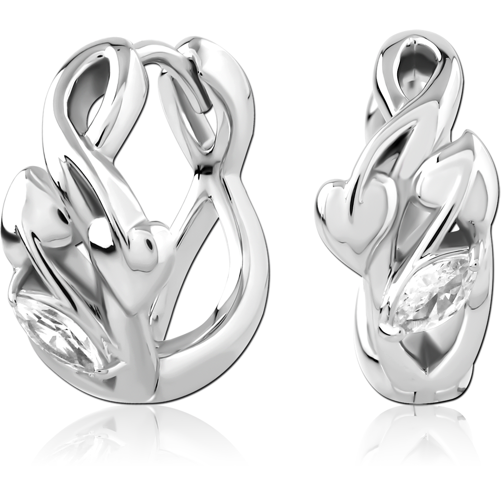 STERLING SILVER 925 RHODIUM PLATED JEWELED HUGGIES PAIR