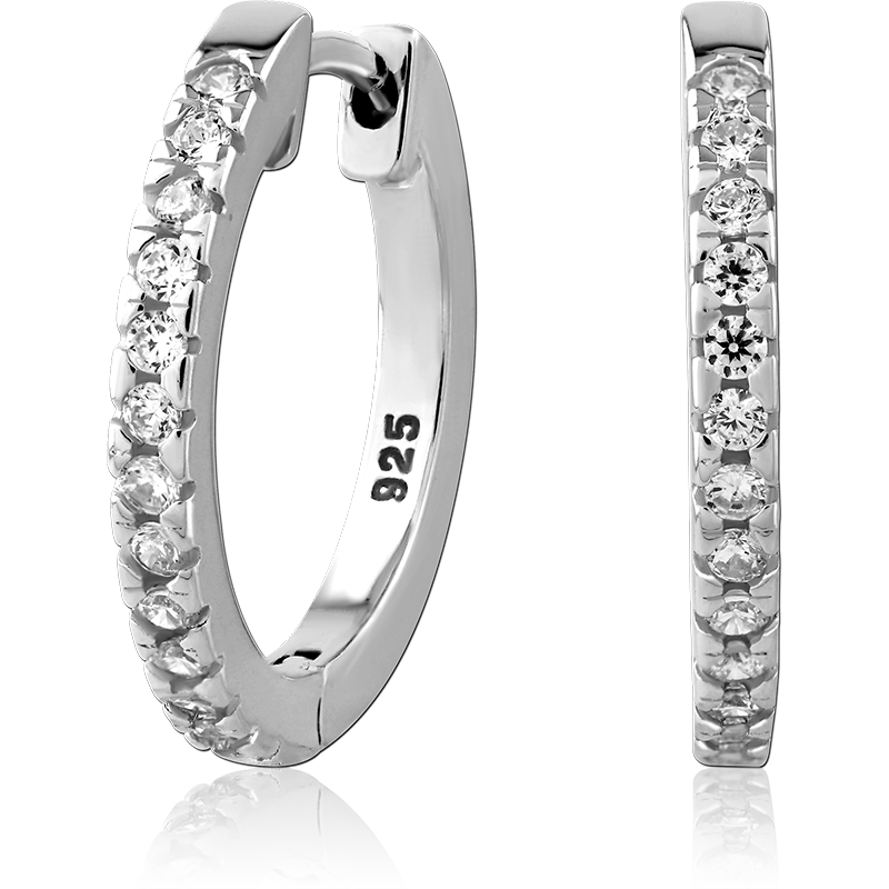 STERLING SILVER 925 RHODIUM PLATED JEWELED HUGGIES PAIR