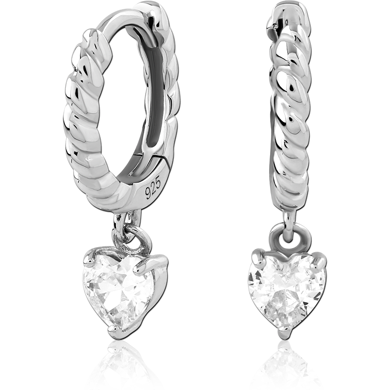 STERLING SILVER 925 RHODIUM PLATED JEWELED HUGGIES PAIR