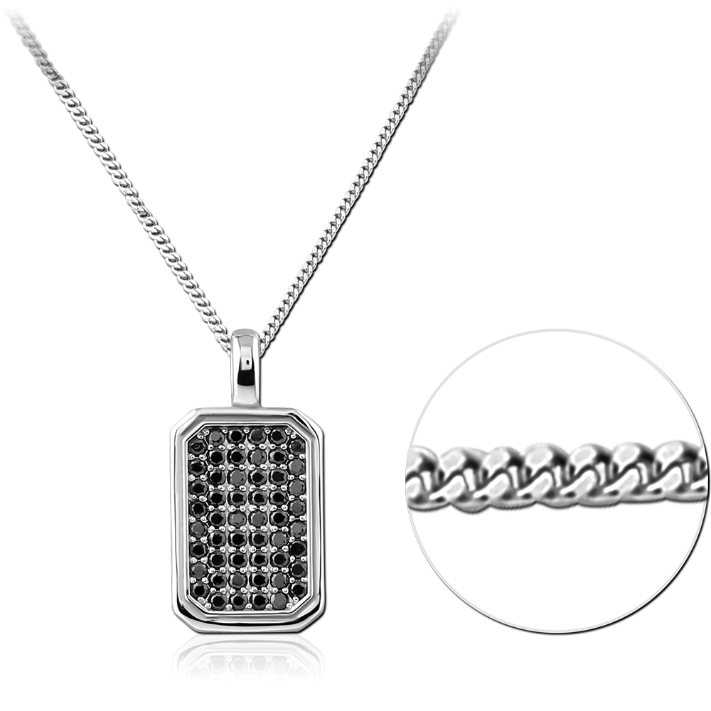 STERLING SILVER 925 RHODIUM PLATED JEWELED NECKLACE WITH PENDANT