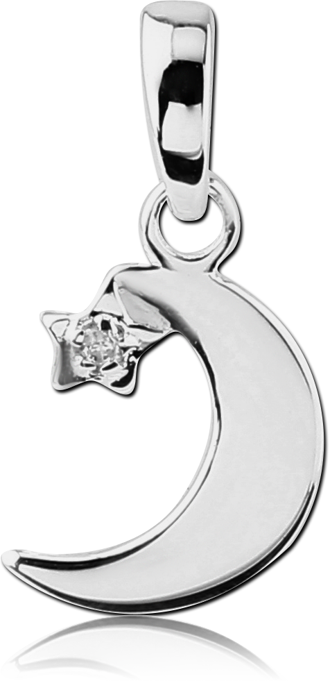STERLING SILVER 925 RHODIUM PLATED PENDANT – CRESCENT MOON WITH STAR